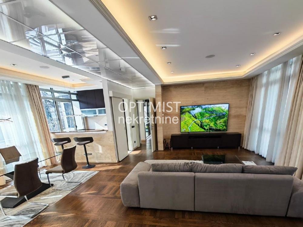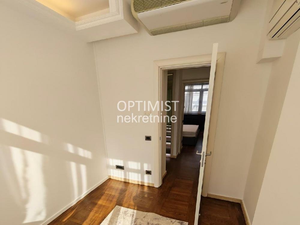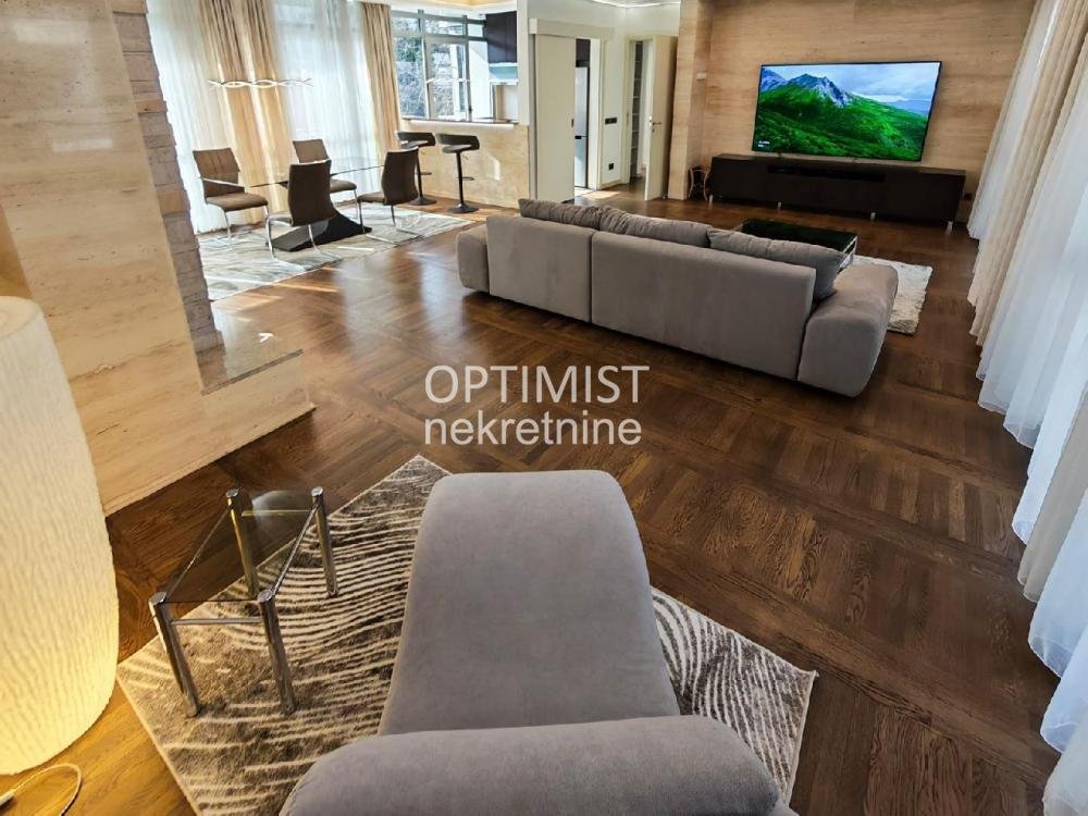 | Optimist nekretnine vam nude luksuzan četvorosoban stan na izuzetnoj lokaciji, površine 148 m². Stan se nalazi na prvom spratu ekskluzivnog, manjeg stambenog kompleksa sa svega šest stanova, gde svaki stan zauzima ceo sprat, što pruža maksimalnu privatnost i mir. Sama zgrada je nagrađivana za arhitekturu, zahvaljujući savremenom dizajnu i vrhunskom kvalitetu gradnje. Stan je izuzetno prostran i svetao, sa visinom plafona od 2,85 m. Sastoji se od dnevnog boravka, tri spavaće sobe, dva kupatila, dve terase, kao i ostave (12 m²) sa mašinama za pranje i sušenje veša. Uz stan dolaze i dva garažna mesta. Opremljen je luksuznim i potpuno novim nameštajem i uređajima: kamin sa automatskim izduvavanjem, hrastov parket, kupatila sa Porcelanosa keramikom, mermerni detalji, kuhinja sa Bosch aparatima i granitnim šankom, LED rasveta, crna stakla sa električnim roletnama. Kompleks je obezbeđen video nadzorom, a stan poseduje i blindirana vrata. Stanarima su na raspolaganju bazen i uređeno privatno dvorište. Cena zakupa stana sa dva garažna mesta iznosi 1900 € mesečno. Troškovi održavanja kompleksa (bazen, video nadzor, centralna topla voda) iznose 400 €, što ukupno čini 2300 € mesečno. Dodatni troškovi: SBB oko 40 €, struja oko 70 €, Infostan oko 60 € leti, dok se gas plaća po potrošnji. Hvala što ste izdvojili vreme za naš oglas. Optimist Real Estate offers a luxurious four-bedroom apartment in an exceptional location, with a total area of 148 m². The apartment is located on the first floor of an exclusive residential complex with only six units, where each apartment occupies an entire floor, ensuring maximum privacy and peace. The building itself has received architectural awards for its modern design and high-quality construction. The apartment is spacious and bright, with ceiling height of 2.85 m. It consists of a living room, three bedrooms, two bathrooms, two terraces, and a storage room (12 m²) with a washer and dryer. Two garage parking spaces are included. It is fully furnished with brand-new, high-end furniture and appliances: a fireplace with automatic ventilation, oak parquet flooring, Porcelanosa ceramics in bathrooms, marble details, a kitchen equipped with Bosch appliances and a granite bar, LED lighting, and black glass with electric shutters. The complex offers full security with video surveillance, while the apartment features a reinforced security door. Residents also have access to a swimming pool and a private landscaped yard. The rental price for the apartment with two garage spaces is €1900 per month. Maintenance costs (including pool, surveillance, and central hot water) are €400, making the total monthly cost €2300. Additional costs: SBB approx. €40, electricity approx. €70, Infostan approx. €60 (summer), while gas is paid according to consumption. Thank you for taking the time to view our listing. Agencijska provizija 50% |